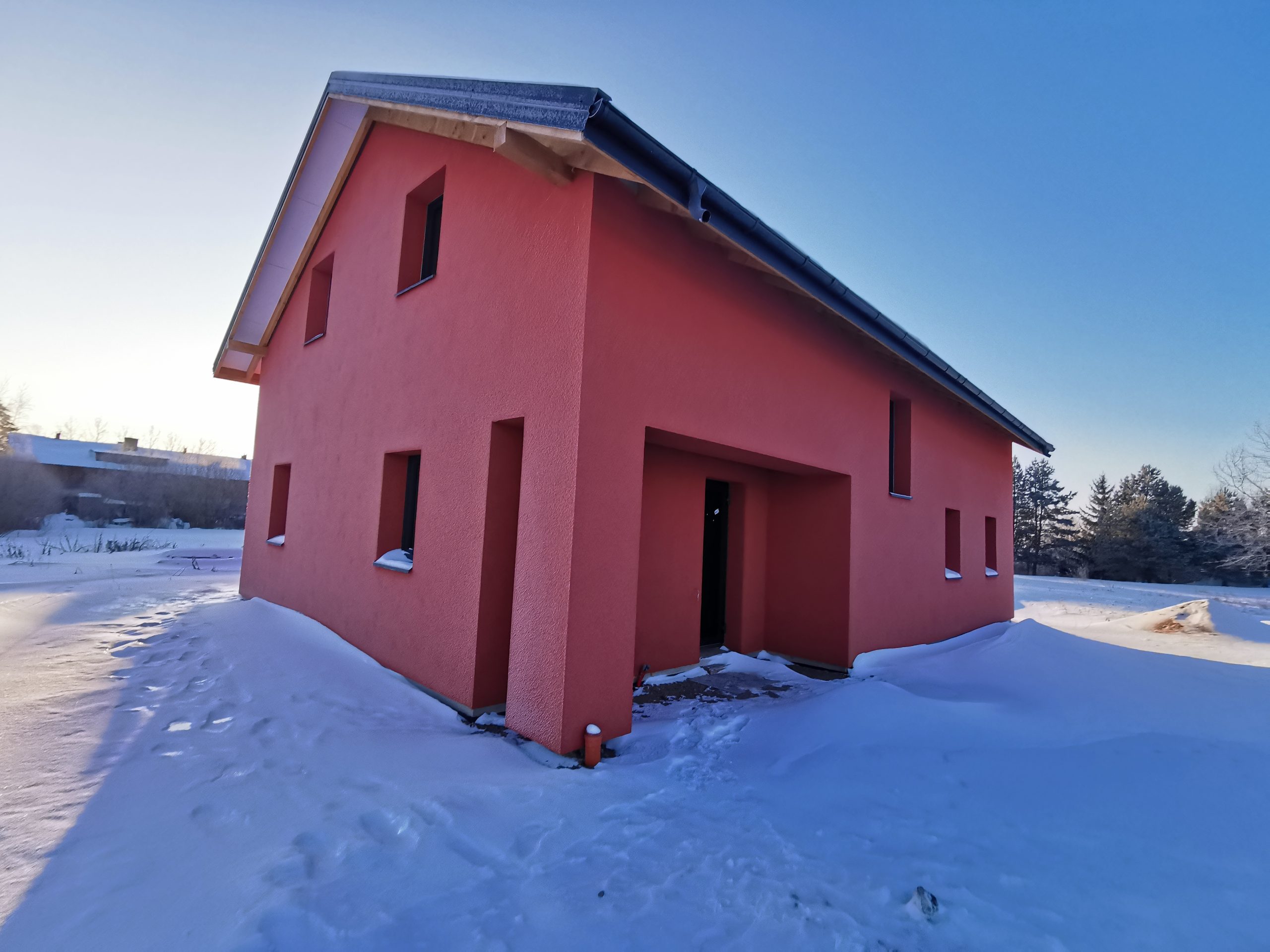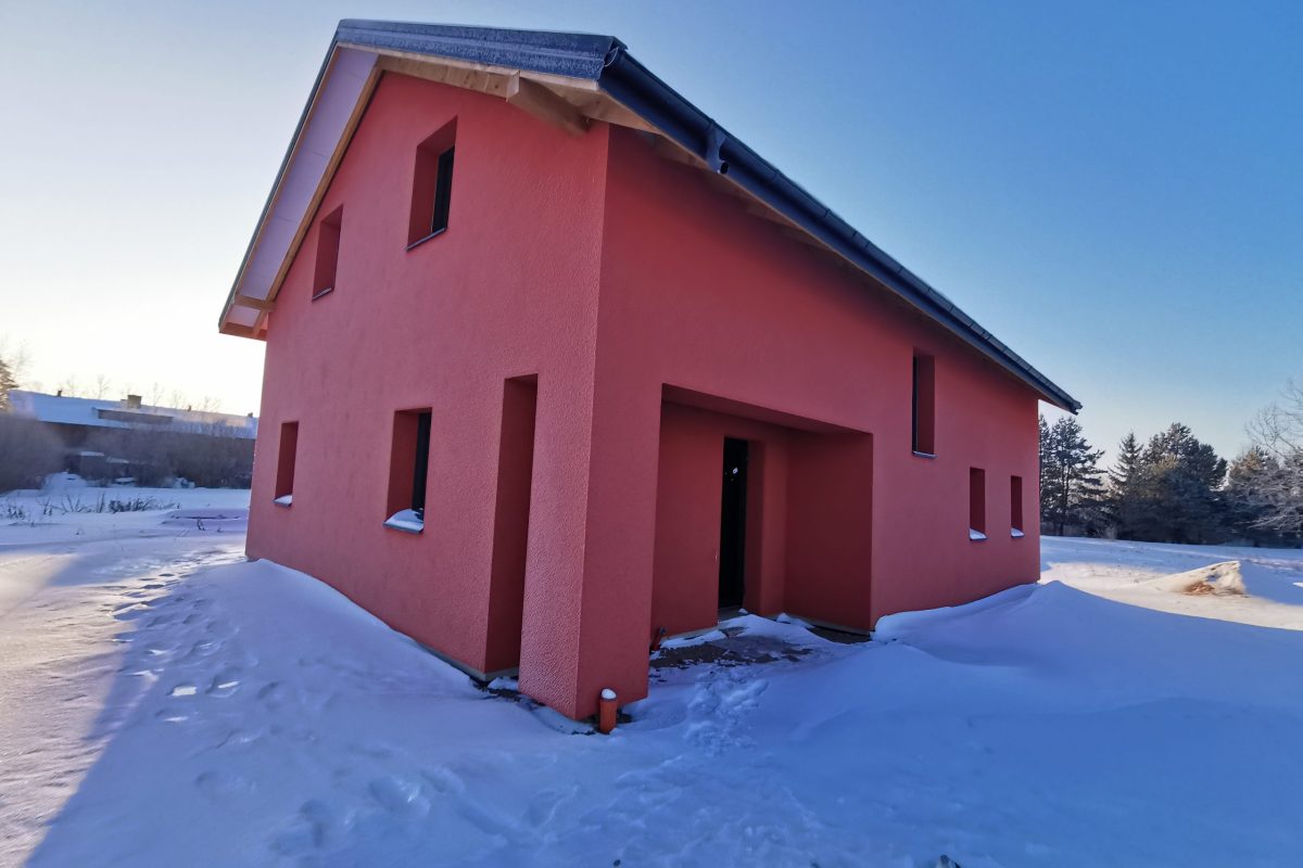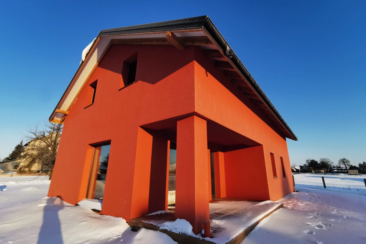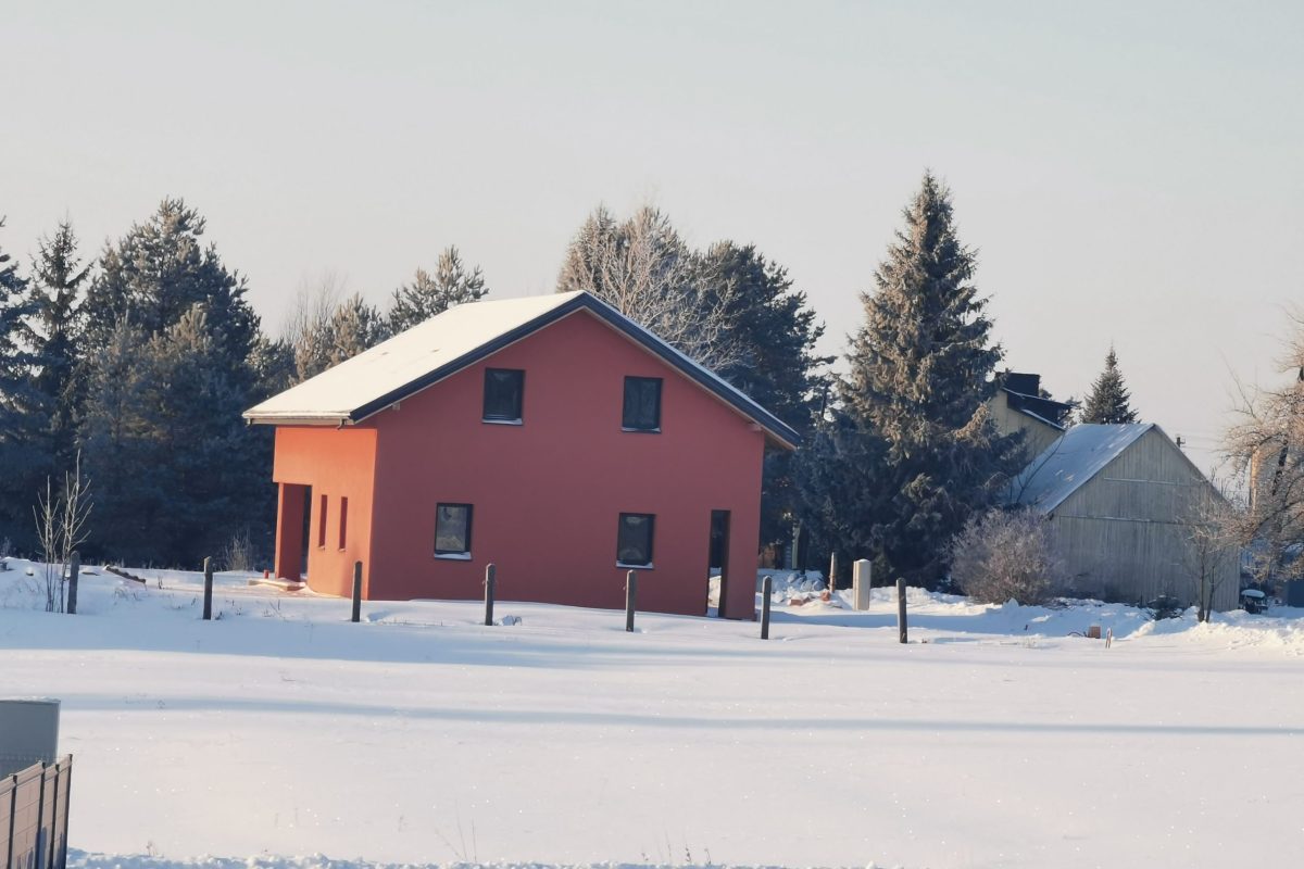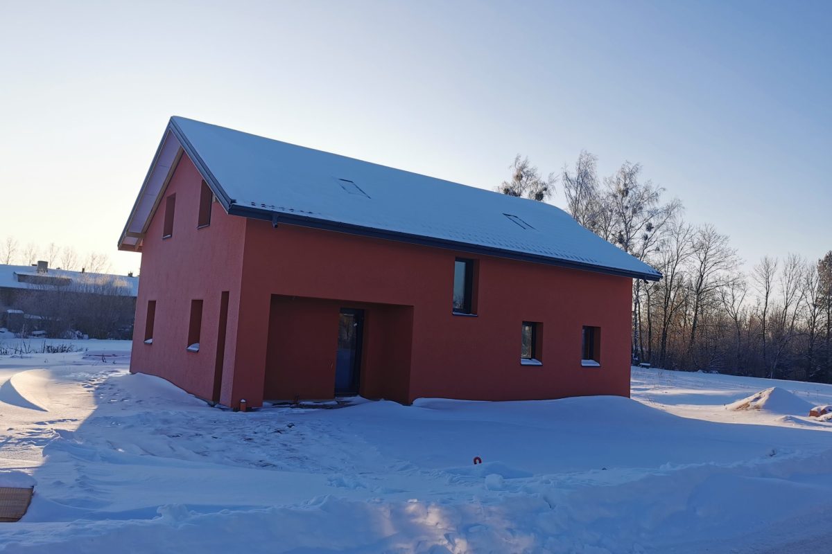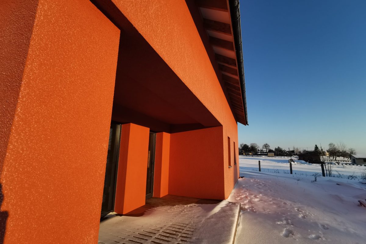 -Namo fasadas apšildytas 25 cm puta, uždėtas silikoninis tinkas.